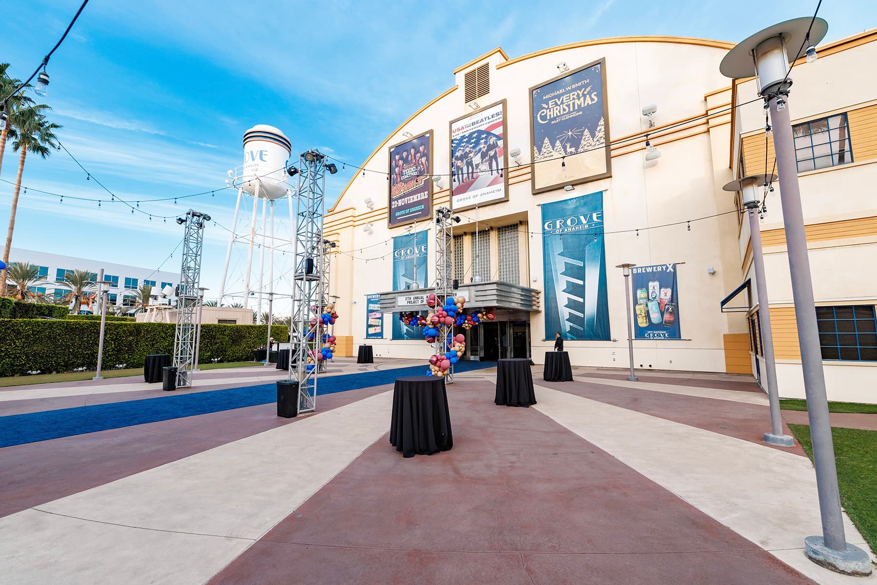 Inspired by the art deco golden age of Hollywood, Grove of Anaheim is a premier private event and live music venue located just adjacent to OCVIBE and Angel Stadium. It provides unforgettable moments for up to 1,700 guests from spectacular red carpet entrances to gourmet dining and VIP treatment—all in a breathtaking setting.